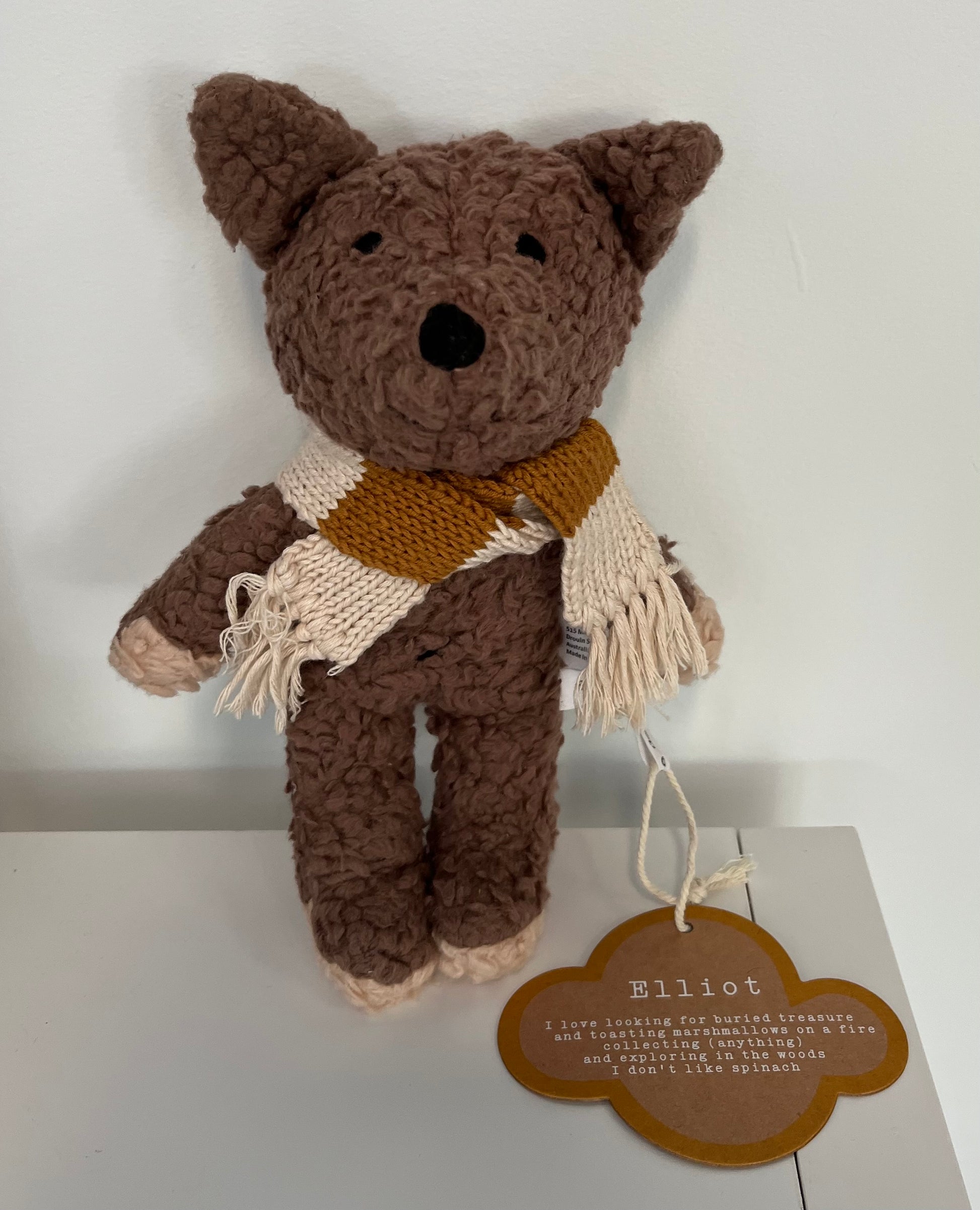 Meet Elliot Dog he loves looking for buried treasure and toasting marshmallows on a fire. He loves collecting(anything) and exploring in the woods. He doesn’t like spinach.