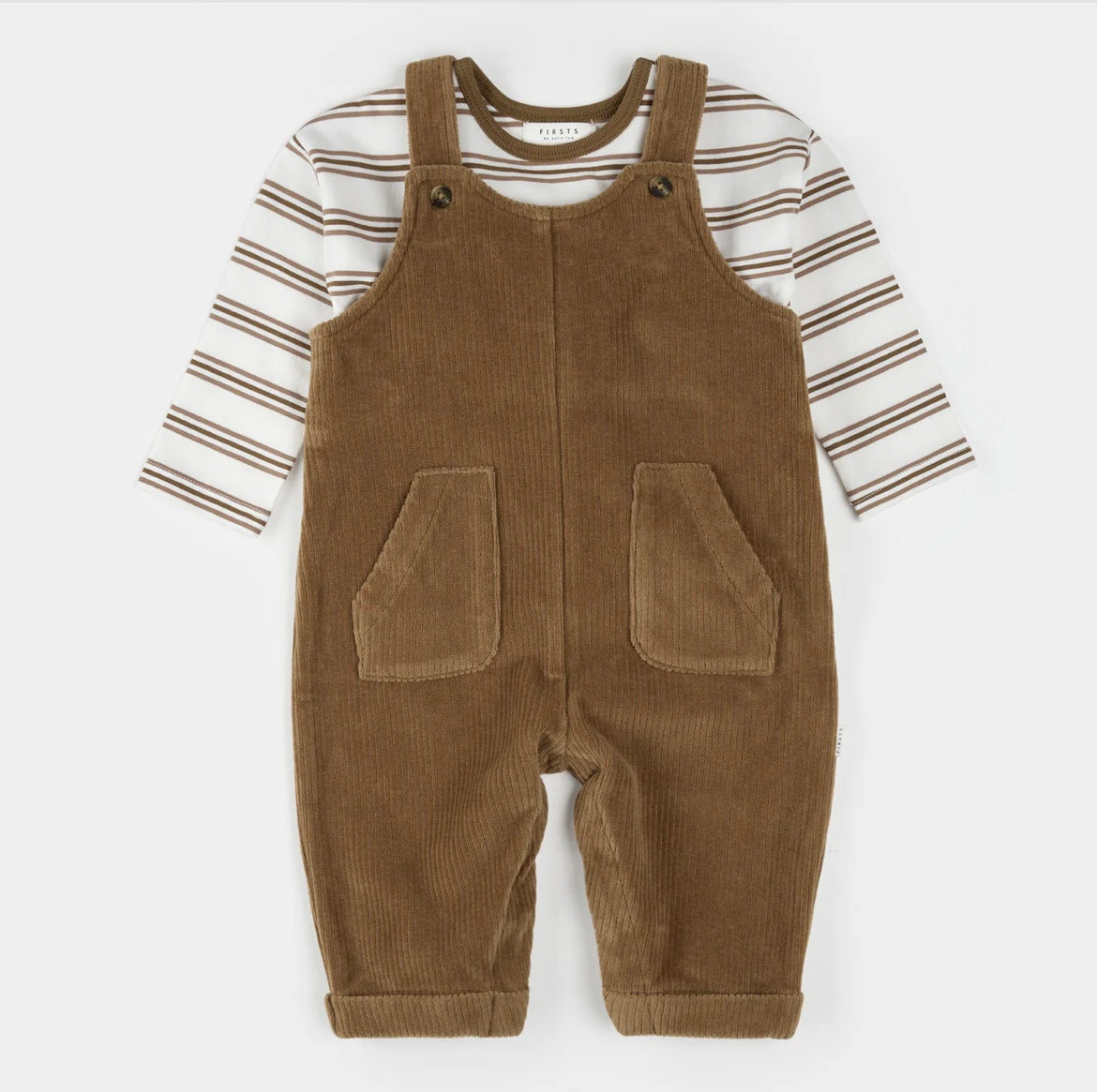 A classic overall set designed for comfort, practicality and a timeless style. The neutral set includes a long-sleeved stripy top and cozy corduroy overalls. Perfect for little ones on the move, this set is soft and breathable and offers plenty of flexibility.