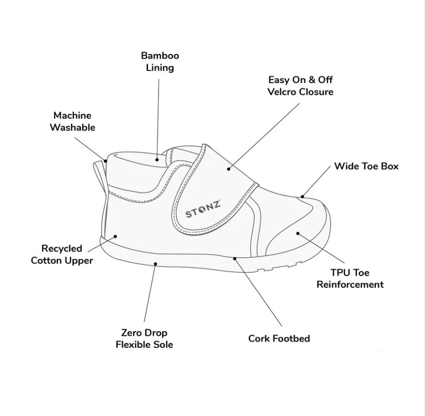 The Cruiser™ Natural Baby combines natural materials with thoughtful design for your baby’s first steps. Featuring an APMA-recognized ergonomic construction, these shoes promote natural foot development with a lightweight, flexible sole. The upper is crafted from a durable blend of 65% recycled cotton and 35% cotton canvas, offering breathability, comfort, and a soft, natural feel. A cork-topped insole provides extra cushioning while ensuring a secure fit. Designed for early walkers, these shoes are lightweight, machine washable, and easy to put on—perfect for growing feet and busy parents alike.