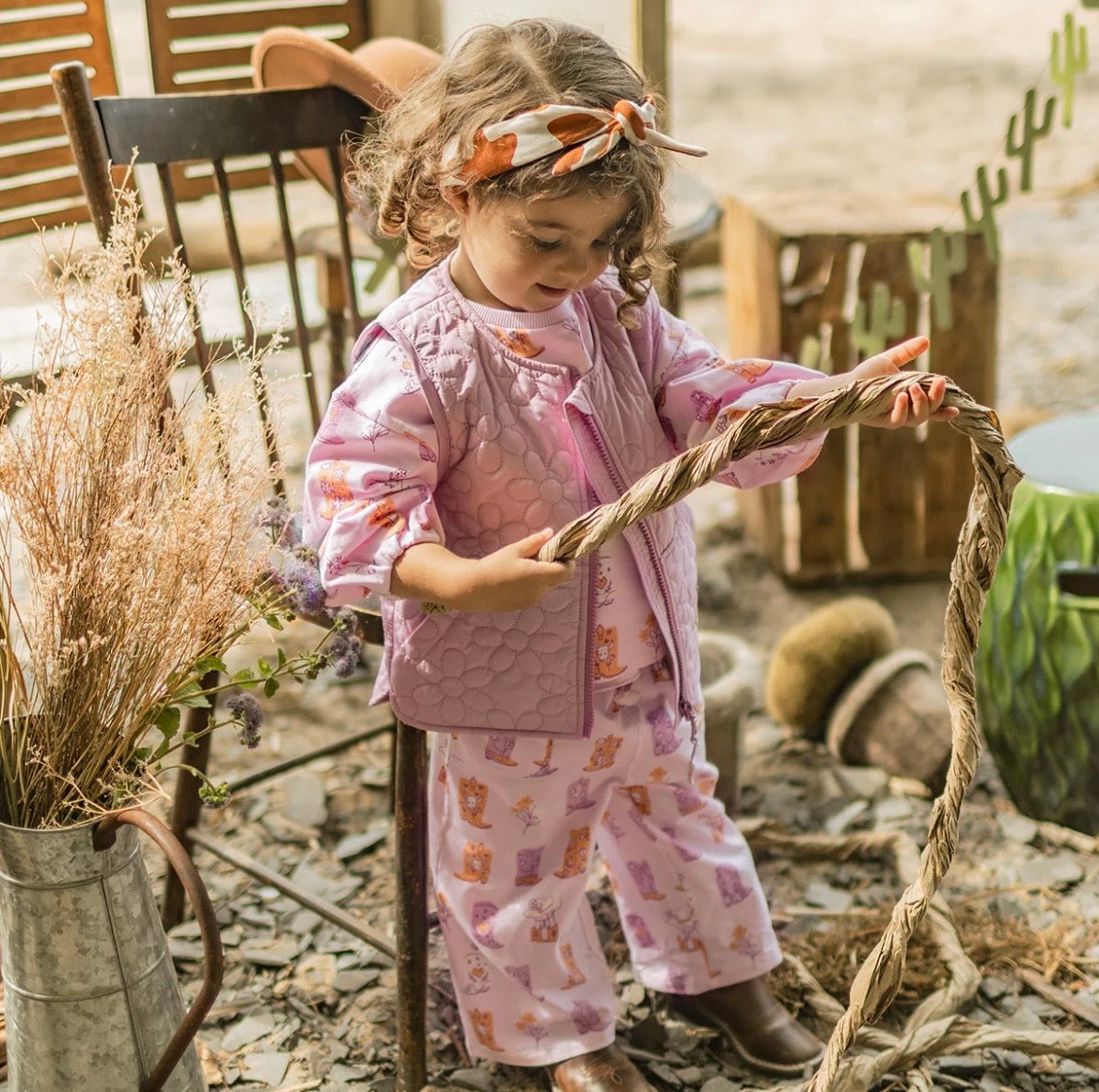 Pink sweatshirt with cowboy boot print for a fun and trendy look. Features a round neckline and elastic cuffs. Made of French terry in a relaxed fit for maximum comfort.